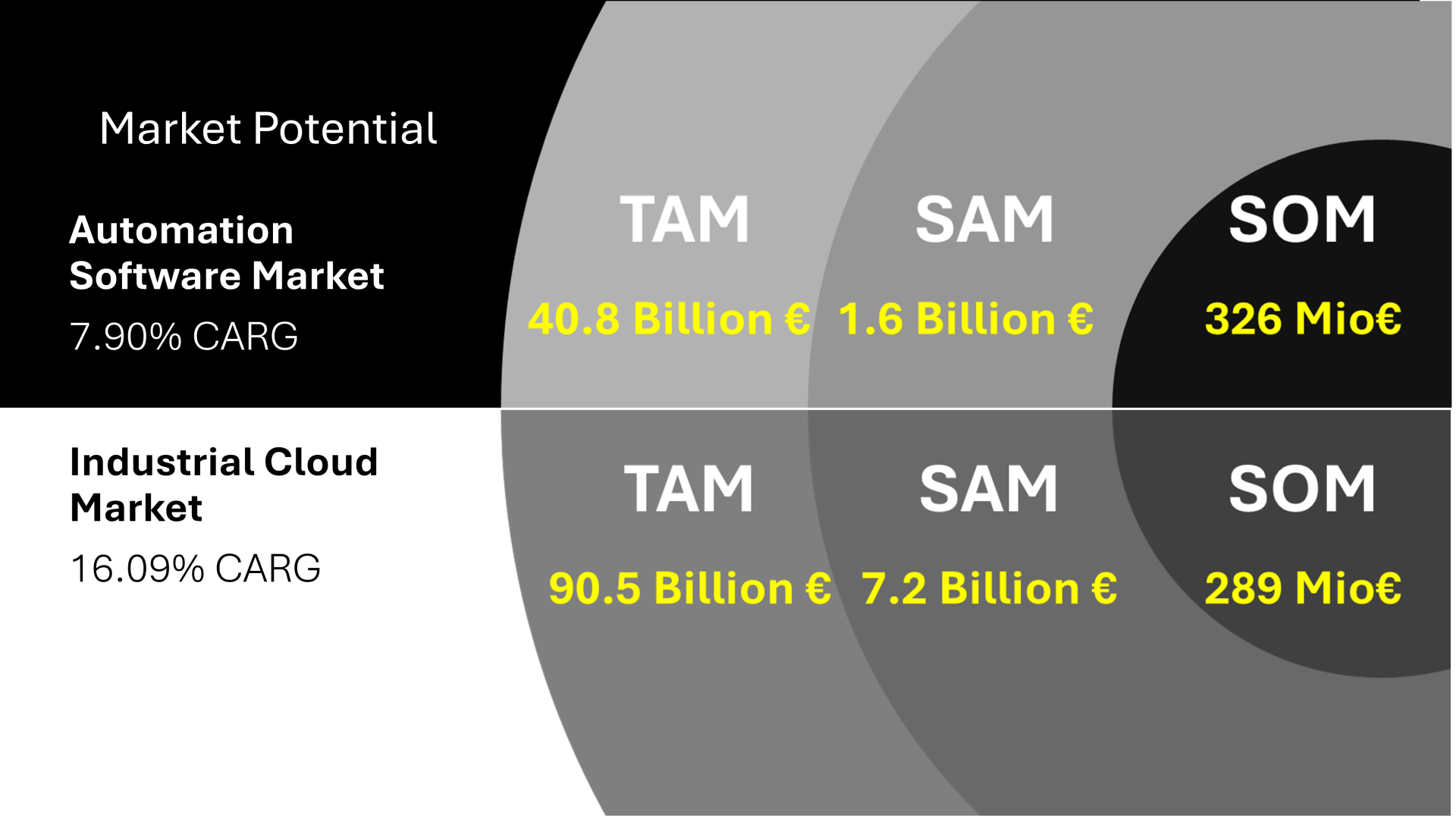 Um das Marktpotenzial für die FCTRY CLD zu definieren, wurden zwei passende Segmente im Bereich Produktion untersucht: Industrielle Cloud Systeme und Automatisierungs-Software. Beide Märkte haben bereits ein hohes Potenzial und sind stark am wachsen. Insbesondere der industrielle Cloud Markt bietet langfristig besonders hohes Wachstumspotenzial.Team