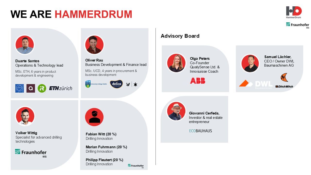 Supported by Fraunhofer IEG’s drilling experts, DWL Baumaschinen’s distribution leadership, and advisors from ABB Ventures. Together, the team combines world-class engineering with proven commercialization and ecosystem leadership.