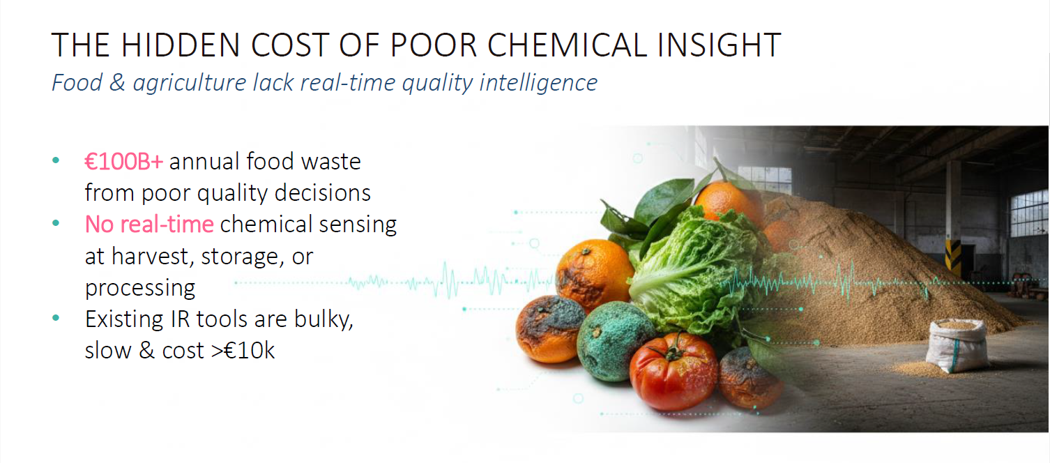 Serino addresses the lack of real-time chemical quality intelligence across food and agricultural value chains, from harvest and storage to processing. Because quality decisions are often made with delayed or incomplete information, companies incur major losses through waste, inconsistent grading, and inefficient process control.Lösung