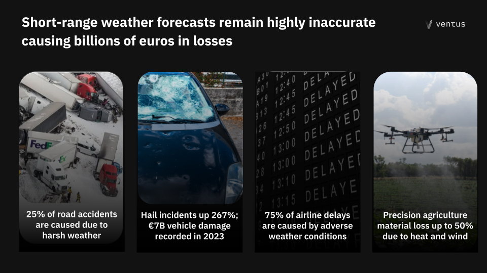 Short range precipitation forecasting is inherently unreliable and imprecise, which costs a bevy of industries billions of euros in lost income or damages. These include the transportation, insurance, agriculture, defense, and aviation sectors. The operational design domain (ODD) of any autonomous ground vehicle is constrained by the environmental conditions, mainly by rainfall. Lack of reliable forecasts forces conservative operational strategies or excessive handovers between autonomous and human drivers.The same applies to aviation, and to modern precision agriculture using drone-based spraying. Highly localized and short term weather effects impact operation and create delays, groundings, lost income or accidents. For insurances, inaccurate forecasts limit their ability to conduct reliable risk assessments.