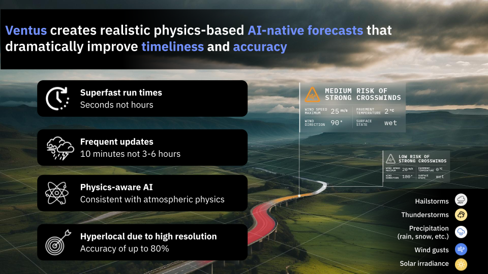 Ventus creates realistic physics-based AI-native forecasts that dramatically improve timeliness and accuracy.